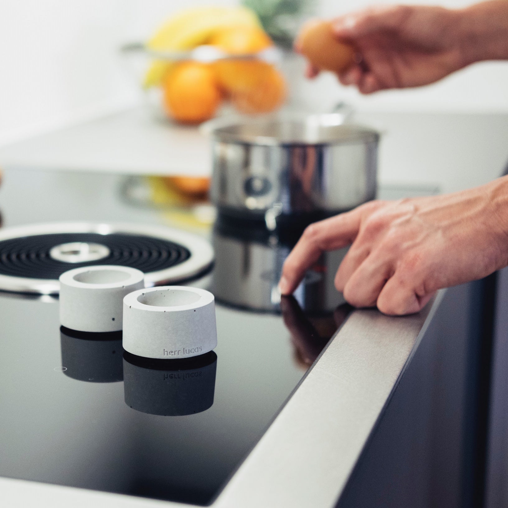 Why choose porcelain or metal when you can start your morning with pure concrete? The Concrete Egg Cup brings minimalist design and tactile craftsmanship to your table — a sculptural piece that feels as timeless as it looks.